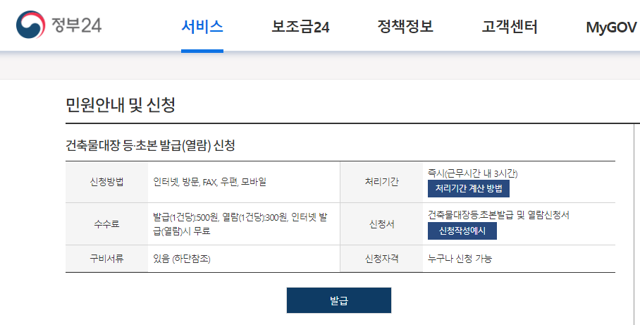 - 민원서비스-건축물발급대장 클릭 후 로그인 (비회원 발급 가능)