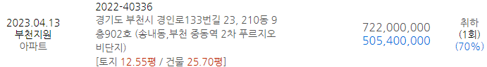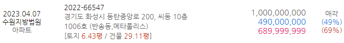 [낙찰결과] 4월 1,2주 경기남부아파트 물건 및 시세