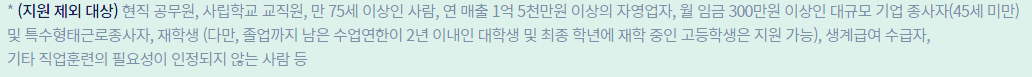 훈련을 희망하는 대한국민 국민이라면 누구나 신청 가능합니다. 이전에 지원이 안되었던 대학생 3학년도 이제 받을 수 있게 되었습니다. (21.9.29 이후)