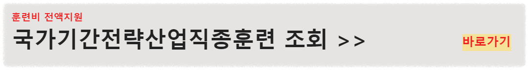 위와 같이 한 훈련에 100%의 훈련비가 나오는 것이 아니지만 1회에 한해 훈련비가 전액지원되는 훈련도 있습니다. 훈련과정은 HRD-Net홈페이지에서 조회가 가능합니다. https://www.hrd.go.kr/hrdp/ma/pmmao/newIndexRenewal.do