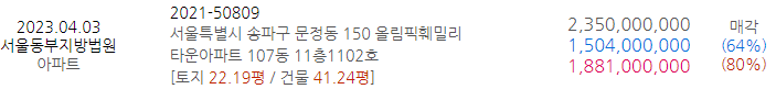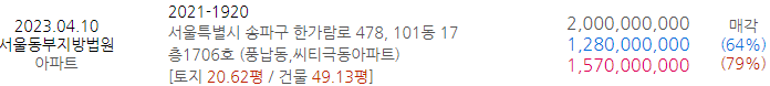 | [낙찰결과] 4월 1,2주 경기남부아파트 물건 및 시세 (0) | 2023.04.15 |