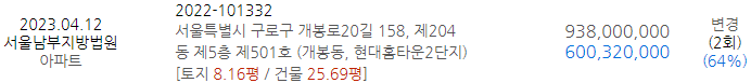 | 6.95억 (23.02.26) 7.0억 (23.02.24) 7.5억 (23.02.05) |