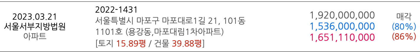 1) 물건정보 및 낙찰가