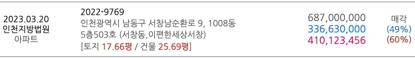 | [경매예정] 3월 3,4주 인천아파트 물건 및 시세 (0) | 2023.03.18 |