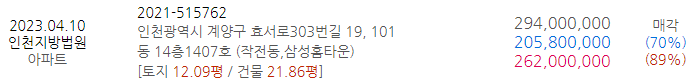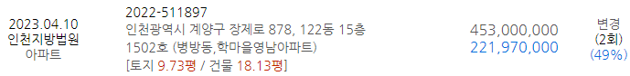 | [경매예정] 4월 3,4주 인천아파트 물건 및 시세 (0) | 2023.04.05 |