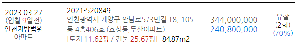 2023년 3.21~3.31 경매 예정인 인천 아파트의 감정가(유찰가)와 시세에 대해서 알아보았습니다.