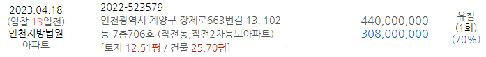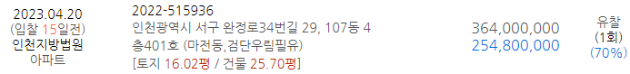 | [낙찰결과] 3월 3,4주 인천아파트 경매결과 및 시세 (0) | 2023.04.03 |