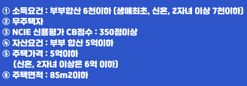 디딤돌 대출은 한국주택금융공사에서 서민들을 위해 실시하는 대출로 금리가 연 2.15~3.0%으로 다른 어떤 대출보다도 금리가 저렴합니다. 하지만 다음과 같은 조건이 만족되어야 합니다.