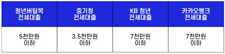 | 1 | 카카오뱅크 청년 전월세보증금 대출 |