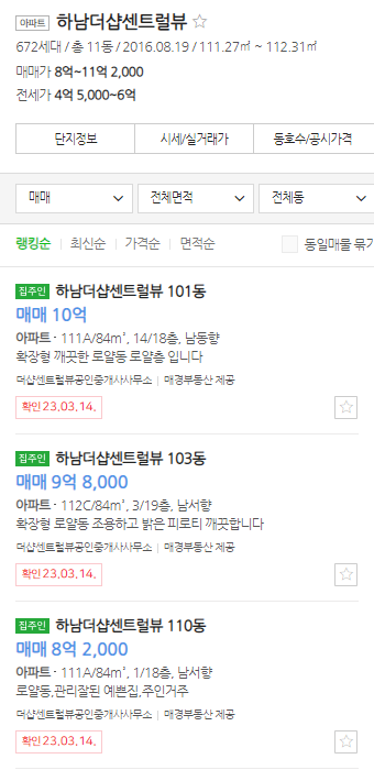 | [경매예정] 3월 3,4주 경기남부아파트 물건 및 시세 (0) | 2023.03.16 |